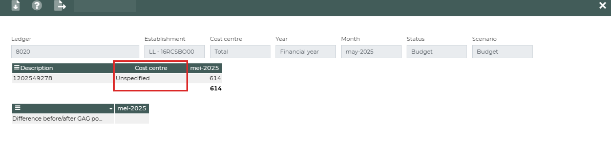 If there is a mapping by cost centre, the view opens as follows: