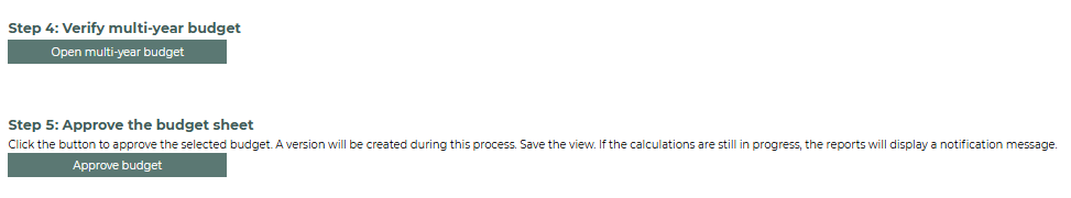 - Click on Open multi-year budget to validate the associated multi-year budget.
