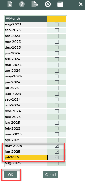 If you would like to display the actuals up to and including a specific month, tick the applicable month(s) and untick the other options.