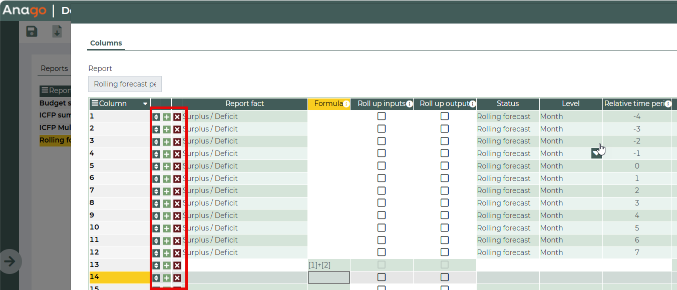 - You can also move, insert and delete rows using the appropriate icon. The formulas are automatically updated if one of the rows is moved and assigned a new number.