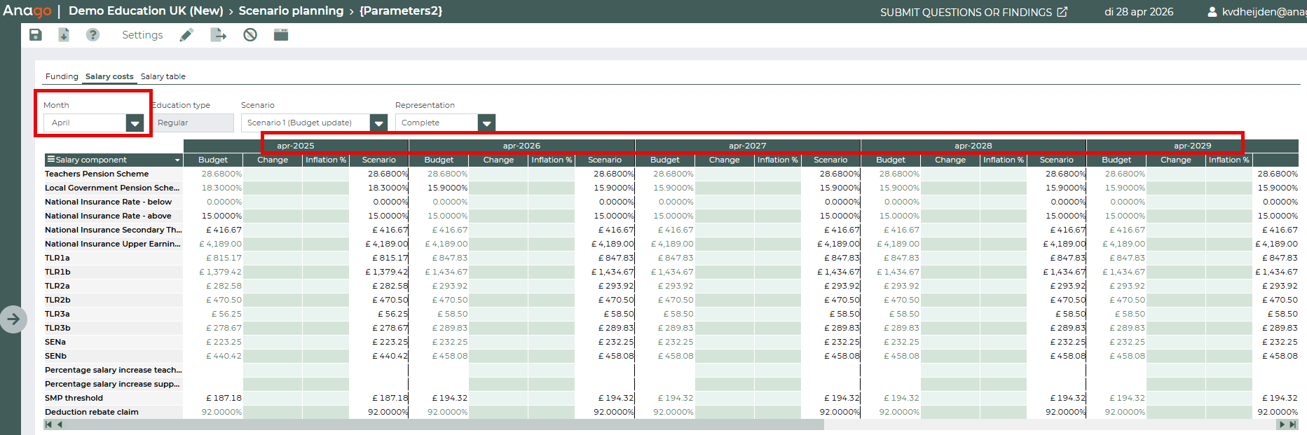 Salary costs are worked with on a monthly basis. Use the month filter to narrow the view down to the period you need.