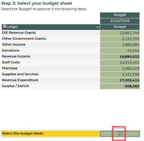 - In step 3, select the budget that you want to approve by ticking the box below the budget you want to approve.