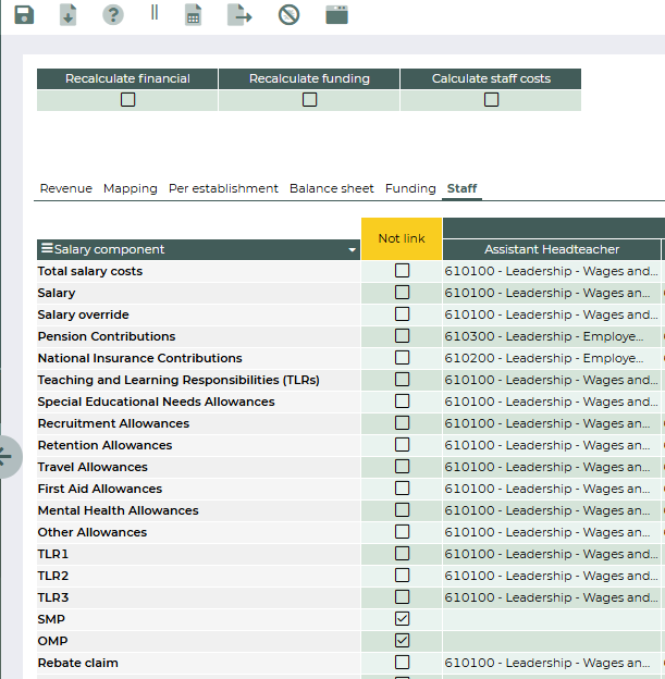 NOTE: If a salary component is not linked, the calculated staff costs for that salary component will not be applied to the Ledger account.