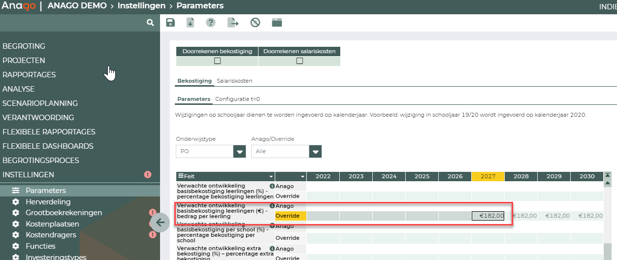 - Voeg het bedrag toe in het scherm Parameters bij de volgende parameter vanaf 2027: