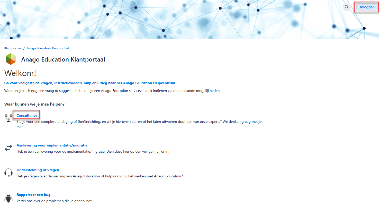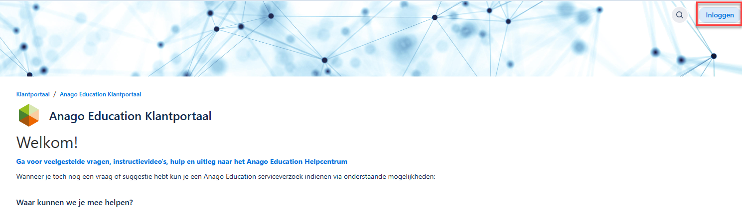 - Door op Inloggen te klikken kun je je eigen vragen inzien of alle vragen van je organisatie.