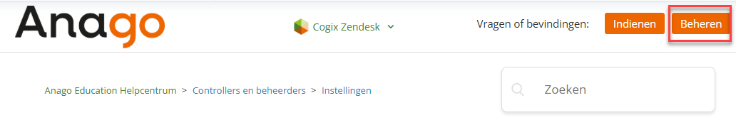 Niet alleen je eigen vragen en bevindingen, maar ook die van anderen van jouw organisatie. Om dit te kunnen doen ga je naar het Anago helpcentrum en klik je op de knop 'Beheren vragen of bevindingen':