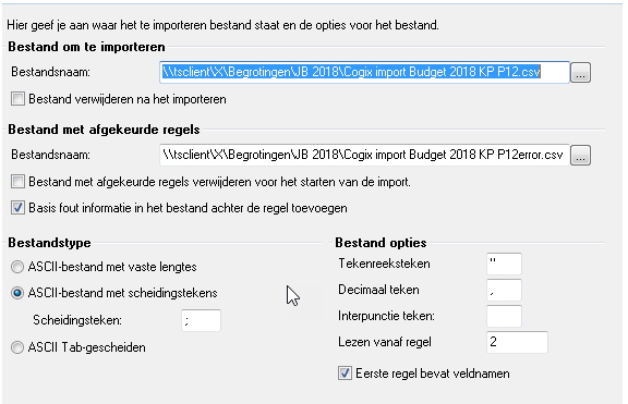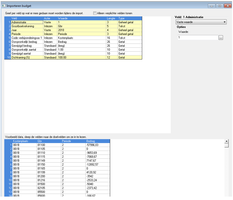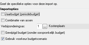 - Verbijzonderingsas mag leeg worden gelaten als je de begroting met kostendrager inleest.